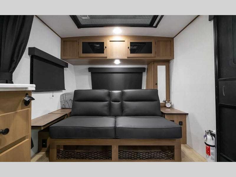 Sleeps 7 Length 22 ft 11 in Ext Width 7 ft 6 in Ext Height 10 ft 2 in Hitch Weight 497 lbs GVWR 4700 lbs Dry Weight 3770 lbs Cargo Capacity 930 lbs Fresh Water Capacity 52 gals Grey Water Capacity 27 gals Black Water Capacity 27 gals Number Of Bunks 2 Refrigerator Type 12V Refrigerator Size 10 cu ft Cooktop Burners 2 Number of Awnings 1 LP Tank Capacity 20 lbs Water Heater Type On Demand Tankless AC BTU 15000 btu Awning Info 15' Power w/LED Lights Axle Count 1 Number of LP Tanks 2 Shower Type Tub/Shower Combo Electrical Service 55 amp Solar Wattage 400 watts Similar Floorplans